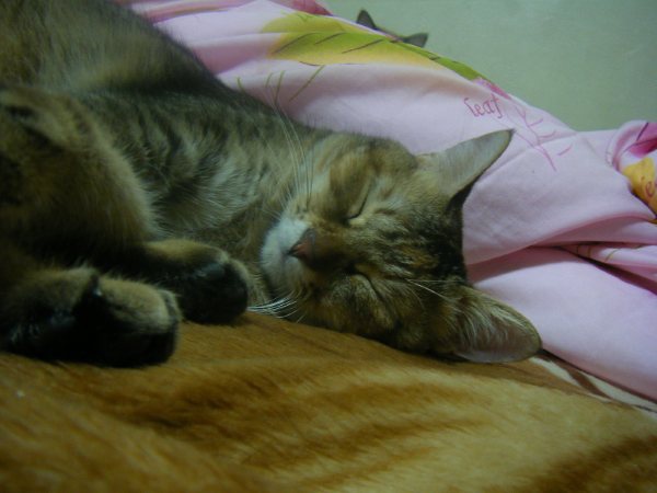 黑色那隻虎斑貓是小p,是個可愛的男生,好像有話要跟我說一樣,遲遲不肯睡......